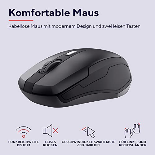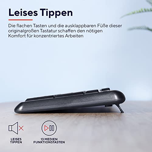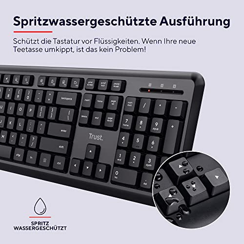 DEUTSCHES LAYOUT: Die Trust Ymo ist eine originalgroße kabellose Tastatur mit deutschem QWERTZ-Layout und Ziffernblock sowie Funkmaus; Dieses Set ist mit Windows, MacOS und ChromeOS kompatibel