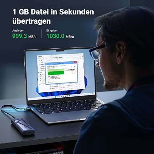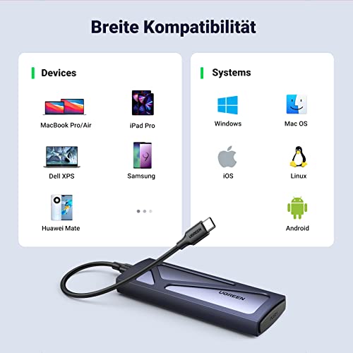 10 Gbps blitzschnelle Übertragung: Das NVMe Gehäuse mit USB C 3.2 Gen 2 Schnittstelle unterstützt die Übertragungsrate von bis zu 10 Gbps, somit kann das NVMe Externes Gehäuse die Lese- und Schreibgeschwindigkeit von bis zu 950 Mbit/s erreichen. Sie können nicht nur große Datei in Sekunden übertragen, sondern auch das System und die Software von ursprünglichem System auf eine mit größeren Kapazität M.2 Festplatte migrieren.