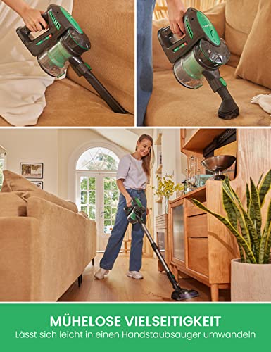 【MÜHELOSE VIELSEITIGHEIT】Der kabellose Staubsauger mit einem ergonomischen Griff und multifunktionalem Zubehör, einschließlich 2-in-1 Bürste, langem Fugen- und Teleskoprohr. Der Staubsauger lässt sich leicht in einen tragbaren Staubsauger umwandeln, um Treppen, Sofas, Betten, Schreibtische, Jalousien, Polster und Autos zu reinigen usw.