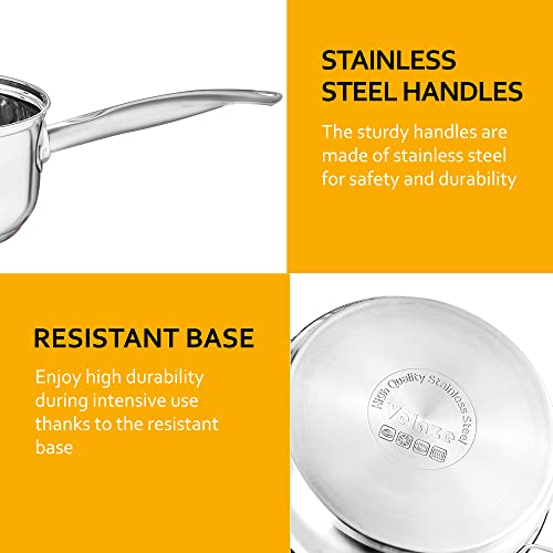 EDELSTAHL IN LEBENSMITTELQUALITÄT – Dieses Kochtopf Set aus hochwertigem Edelstahl ist schwer genug, um die Wärme gleichmäßig zu leiten und das Anbrennen von Lebensmitteln zu verhindern. Das robuste Metall ist außerdem langlebig und kann bei richtiger Behandlung Jahrzehnte halten. Unser Töpfe Set kann in der Spülmaschine gewaschen werden, so dass Sie Ihre Hände frei haben.