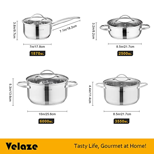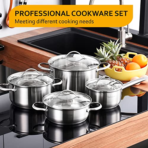 EIN SET ALLES DRIN – Das 8-teilige Topfset besteht aus einem Stielkasserolle mit Deckel Ø 16 cm, drei Fleisch- oder Kochtöpfen in verschiedenen Größen Ø 20 / Ø 20 / Ø 24 cm, die jeweils mit einem Deckel aus gehärtetem Glas ausgestattet. Sehr gut geeignet für große Familien von 3 bis 5 Personen. Eine Vielzahl von Töpfen und Utensilien kann auch Ihre unterschiedlichen Kochbedürfnisse erfüllen.