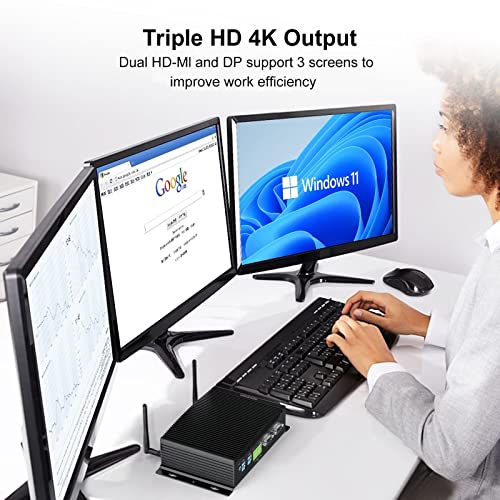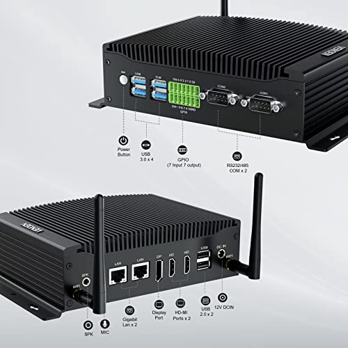 【Hocheffizientes 3-Display】Lüfterlos mini desktop PC mit reichen Schnittstellen (2*HD-MI, 1*DP, 4*USB 3.0, 2*USB 2.0, 2*RJ45 Lan, 2*RS232/485 COM, GPIO, SPK/MIC, 12V DC IN)), ermöglicht es Ihnen, mit mehr Geräten, wie Projektoren, Monitore, Lautsprecher, Tastatur, Maus und Büroausrüstung zu verbinden. Ausgezeichnetes Dreifach-Display-Design mit 4K UHD-Grafik, fördert Ihre Arbeitseffizienz und Produktivität erheblich und bietet Ihnen ein High-Definition-Erlebnis.
