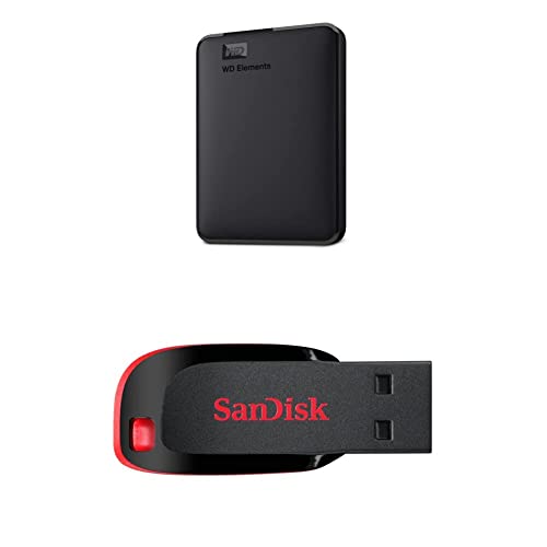 WD Elements Portable, Externe Festplatte – 2 TB – USB 3.0 – WDBU6Y0020BBK-WESN + SanDisk 32GB Cruzer Blade USB-Flash-Laufwerk