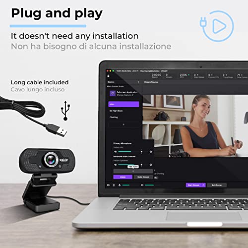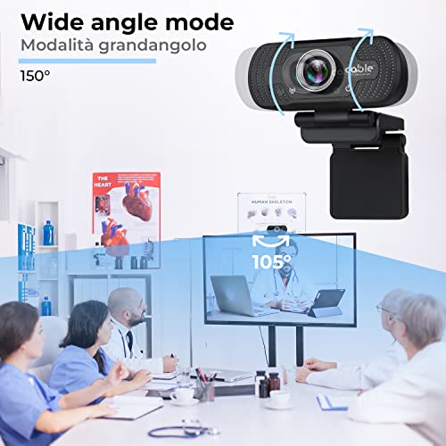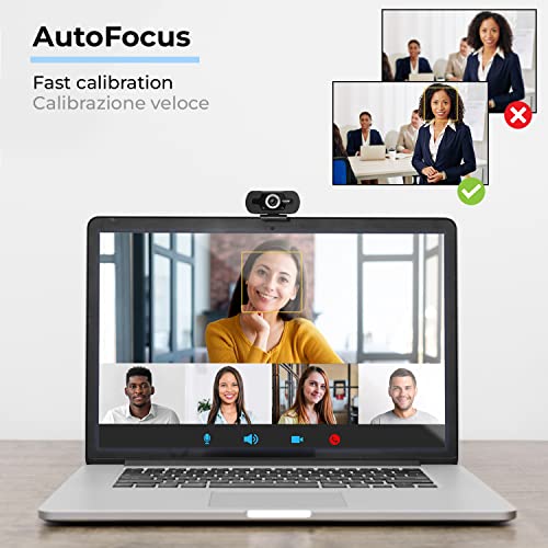 Webcam PC mit Full HD 1080P Mikrofon, USB Webcam PC Clip einstellbar und 105° Weitwinkel, Webcam PC Autofokus Streaming und Videokonferenzen Skype Hangouts Zoom Teams, kompatibel Windows Mac Android