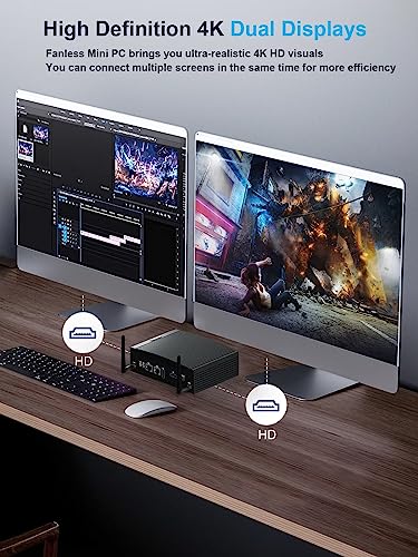 【Effizientes und platzsparendes Design】➨ Erleben Sie die Vorteile eines lüfterlosen Designs mit dem H7 Industrial Fanless Mini PC. Im Vergleich zu Desktop-PCs in voller Größe verbraucht er deutlich weniger Strom. Mit einer kompakten Größe von 6,69 x 4,96 x 2,28 Zoll (2,42 Pfund) ist es leicht und für Geschäftsreisen geeignet. Verwenden Sie die VESA-Halterung, um ihn an der Rückseite eines großen Monitors zu befestigen und so Platz auf Ihrem Schreibtisch zu sparen.