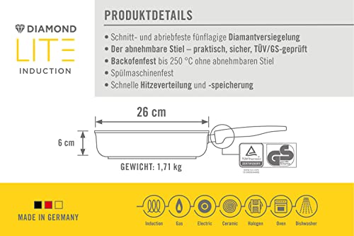 Woll Diamond Lite Pfannenset bestehend aus 2x Pfanne 26x26cm und 2x Deckel 26x26cm – Induktiv, mit abnehmbarem Stiel, geeignet für alle Herdarten, backofenfest