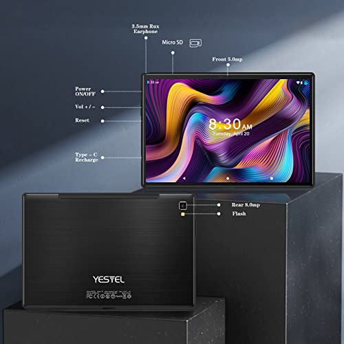 YESTEL Tablet 10 Zoll mit Schutzhülle, Android Google GMS HD Tablet mit 64GB ROM, 1 TB Ausbaufähig, 2.5D IPS 800×1280, WiFi, 6000mAh, Bluetooth, Dual Kamera 5MP + 8MP, Schwarz
