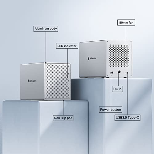 Yottamaster Aluminium 5 Bay USB C Festplattengehäuse, Externe SATA Festplatte Gehäuse für 3,5″ /2,5″ festplatten-Unterstützung 5X16TB- mit 80mm Leise Lüfter, EU-Stecker [Festplatte Nicht enthalten]