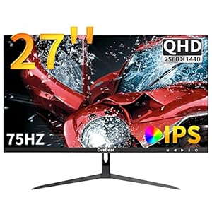 GreBear 27 Zoll 2K Computer Monitor, QHD IPS PC Monitore 2560 x 1440p 75Hz Home Office Gaming Bildschirm, HDMI, Display Port, FreeSync, Integrierter Lautsprecher, 100 x 100 mm VESA Montierbar